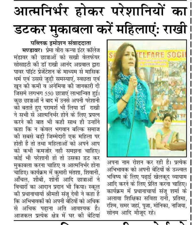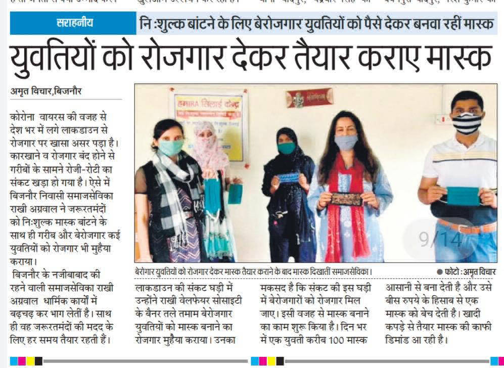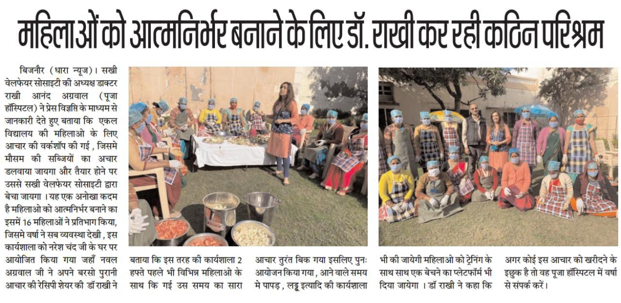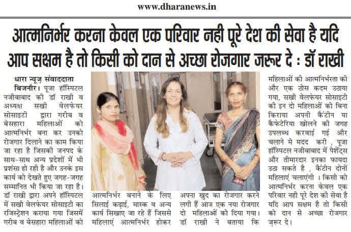 Sakhi welfare society was establised by Dr Rakhi Anand Agarwal in 2019. Its a consolidated effort of the founder who has been working relentlessly for past 20 yrs in promoting gender equality and opposing female foeticide realised that if women are financially independent chances of their exploitation are less, hence Sakhi welfare society was born. Sakhi supports women to earn a livelihood by providing skills. Sakhi runs a free stitching school which was establised in 2016 even before the society was born till now it has trained more than 700 women free of cost . Many women who work regularly their hand made products are marketed by sakhi as well. In times of covid pandemic more than 50 thousand hand made masks were made by the girls on orders which not only earned a livelihood for them but raised awareness for hand made reusable masks , her efforts lead to the masks reaching the indian embassy in ireland where our skills were appreciated by hon his Excellency ambassador shri sandeep kumar ji on his face book page .sakhi welfare society went on to make the longest face mask and got their name added to the indian record book too during the year 2020 . She emerged as a true corona warrior by not only attending non stop to her patients but providing livelihood to women in these tough times , her visionary thought process connected these girls to national livelihood mission and now they shall get the orders for stiching from the government bodies . She has authored a book atam nirbhar nari sarv hitkari during the covid times which is about her views on being financially independent and different college courses available for young girls in india.she has featured in doordarshan uk mahila jagat and doordarshan lucknow in the program ek mulaqat for her exemplary work on women empowerment.she is also an actress by hobby if time allows .